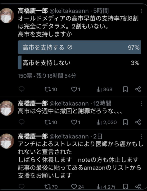 スレッドタイトル:「高市早苗の支持率8割は完全にデタラメ!2割もいない」