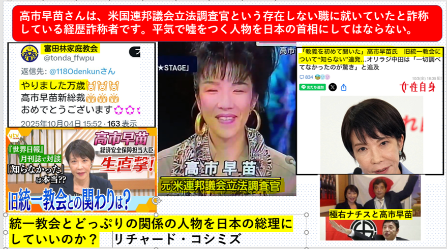 018 | 名無しさん | 2025/10/09(木) 22:13:39 | 高市=統一教会 このイメージを流 | 画像なし |