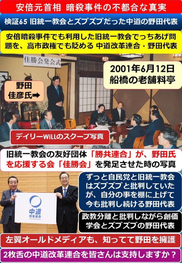 スレッドタイトル : 旧統一教会との疑惑…野田氏「記憶にない」姿勢貫くのは無理か