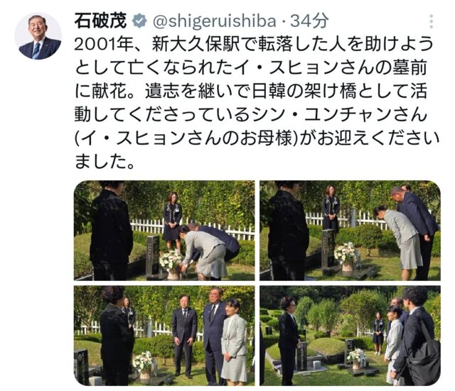 スレッドタイトル:日本人を助けようと亡くなった韓国人に寄り添う石破