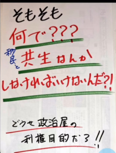 公明や共産左翼共が主張するのは、共生では無く、強制って言葉が的確な表現