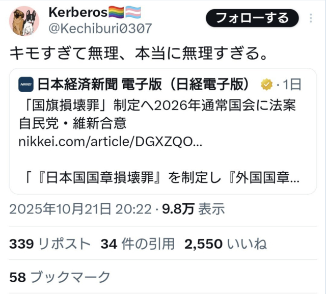 パヨさん、「国旗損壊罪」が制定されるため発狂、