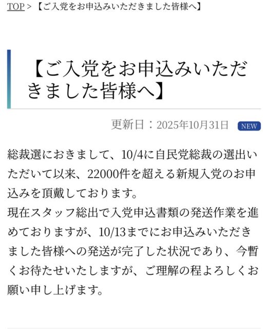 スレッドタイトル:自民党に入党希望者が殺到?