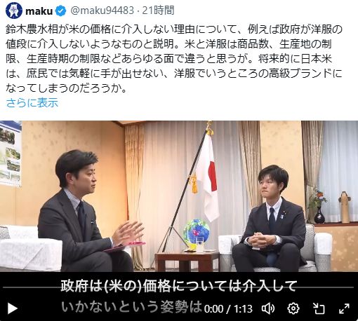 スレッドタイトル:政府はコメの価格には、介入しない?