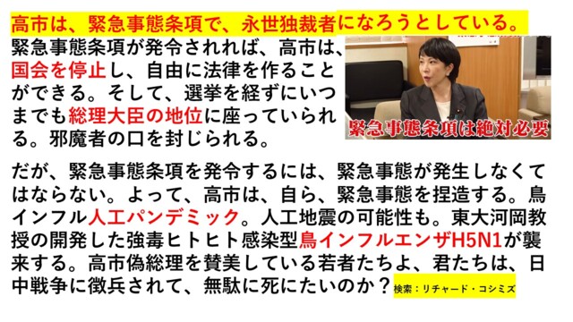 スレッドタイトル:高市は、緊急事態条項で永世独裁者になろうとしている!
