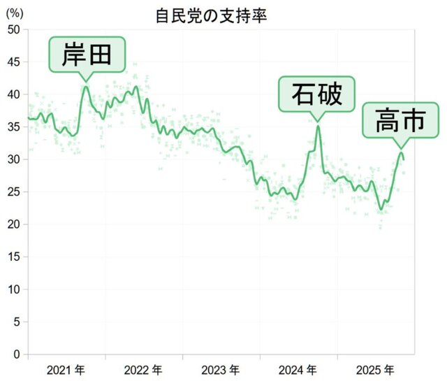スレッドタイトル:自民党の支持率は、高市政権が一番低かった!