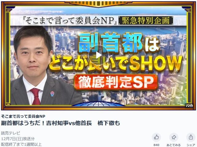 7日読売テレビそこまで言って委員会NP