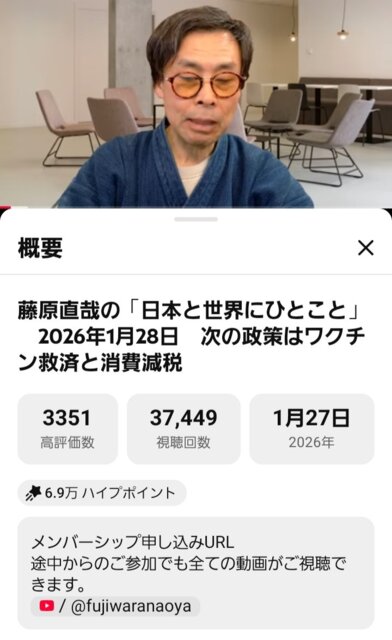 スレッドタイトル:藤原直哉先生が、ワクチン救済に言及!ゆうこく押し!